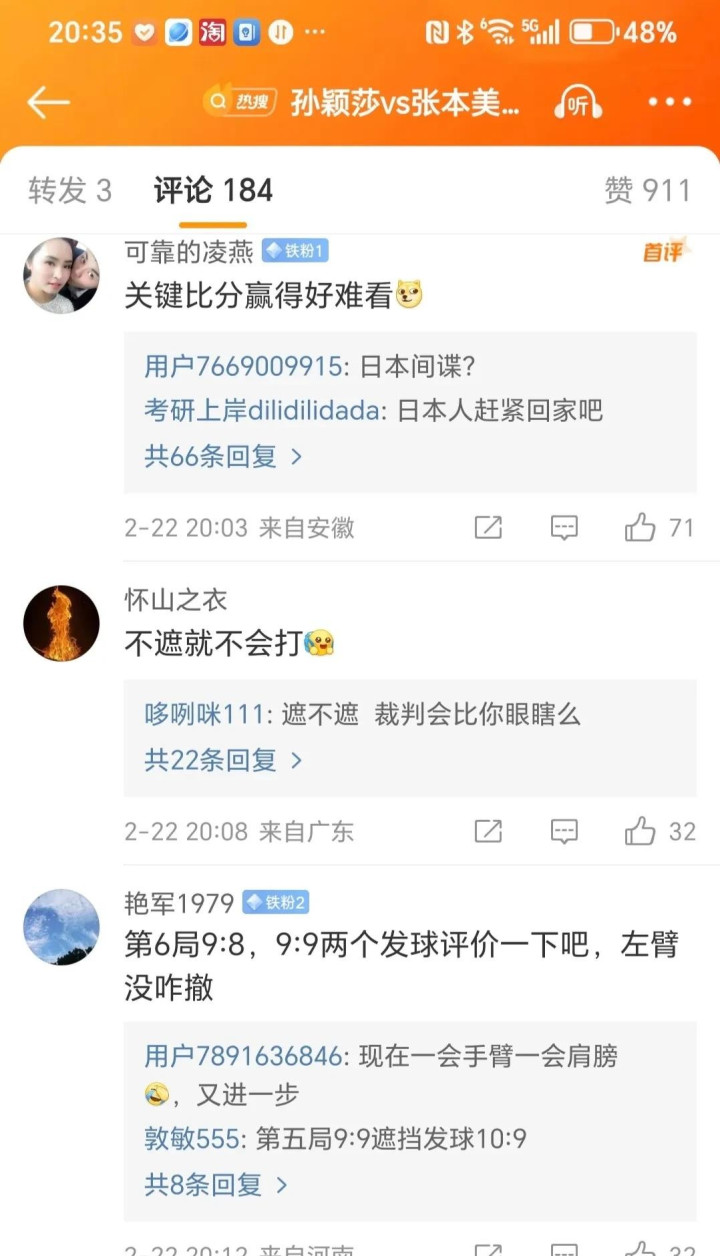 这场比赛,真是看得人热血沸腾!孙颖莎和张本美和来来回回,打得难解难分,2:2平之后,关键时刻,孙颖莎爆发了,硬是把比赛拿下!想想看,这逆转有多刺激!但是,就有那么些人,不看精彩的比赛过程,偏偏盯着孙颖莎的几个发球,说是遮挡了,违例了!这……是不是有点过了?这场比赛,裁判没说违例,难道咱们观众比裁判还专业? 难道输赢比比赛精彩程度更重要吗?